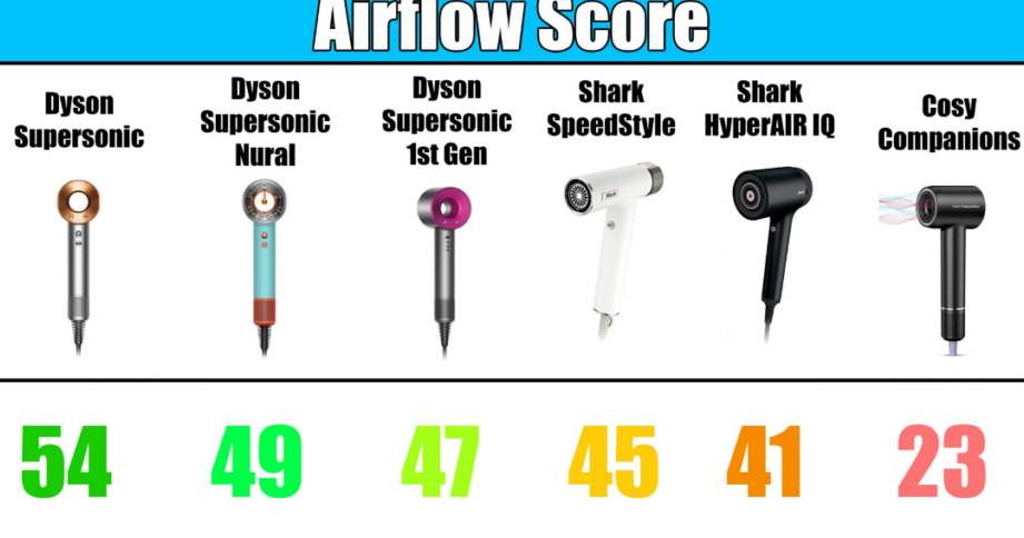 The performance of a hair dryer can be gauged by several key metrics:
